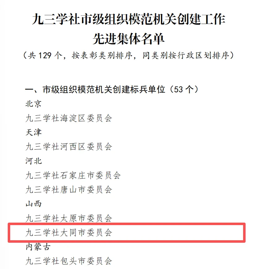 长期以来,九三学社大同市委会始终坚守多党合作初心使命,紧扣“四新”“三好”建设要求,持续提升机关建设标准化、规范化水平。社市委会持续深耕自身建设,健全完善工作制度机制,锤炼过硬干部队伍,着力营造担当实干、风清气正的机关工作氛围。