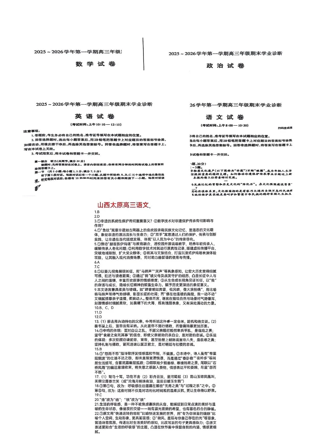 >太原2025~2026学年第一学期高三年级期末学业诊断