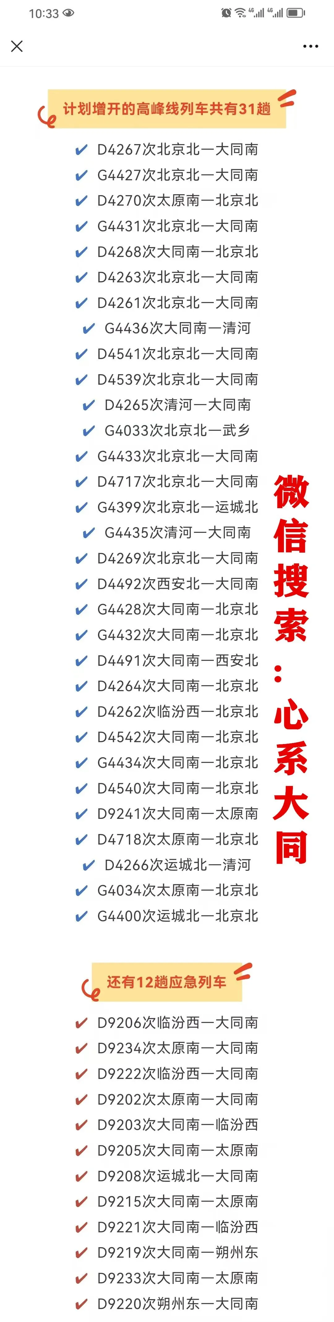 >从大同乘高铁有变,2月5日开始