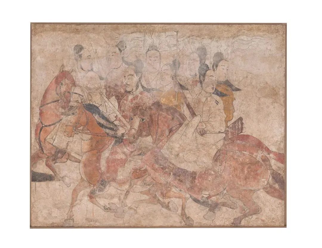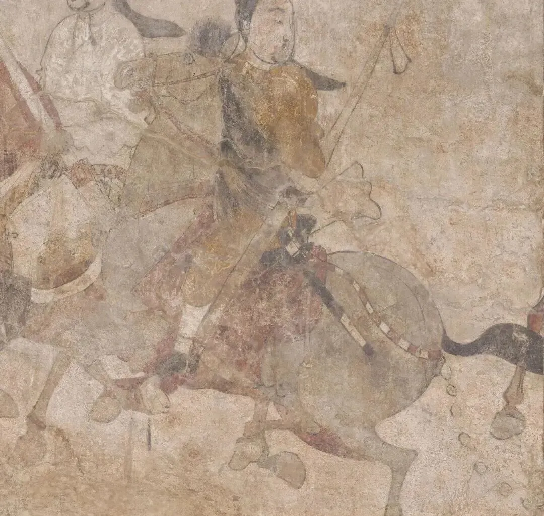 娄叡墓壁画中共有200余匹骏马,这些马匹形象无一重复,栩栩如生。壁画采用铁线勾勒和重彩填染的手法,把马匹刻画得惟妙惟肖,极富动感。在浩荡的鞍马仪仗队中,有两匹马已不仅仅是坐骑,它们被网友们赋予了灵魂,成为读懂那个时代的文化符号。