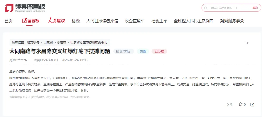 滕州:官方回应!这里红绿灯底下摆摊问题