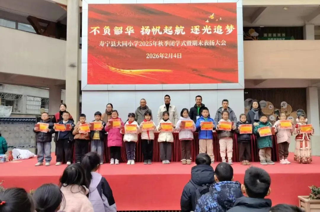 2月 4 日上午,大同小学举行2025-2026学年第一学期闭学式暨期末表扬大会,为充实而奋进的一学期画上圆满句号,助力学生度过一个安全、快乐、祥和、有意义的寒假。