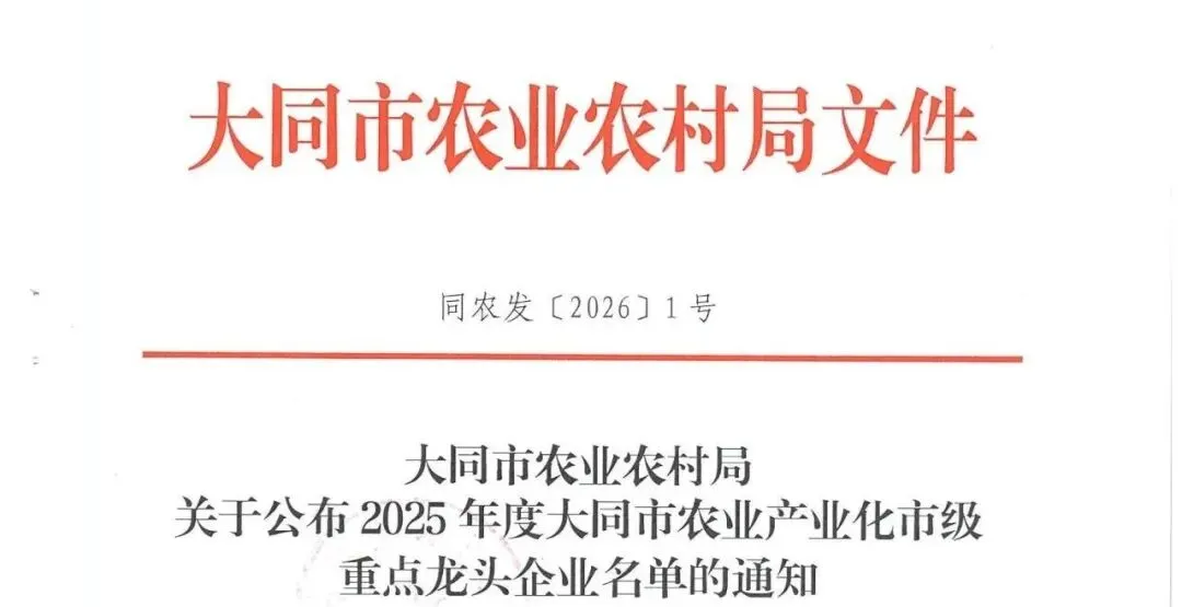 喜讯!绿港(大同)园区入选2025年度大同市农业产业化市级重点龙头企业