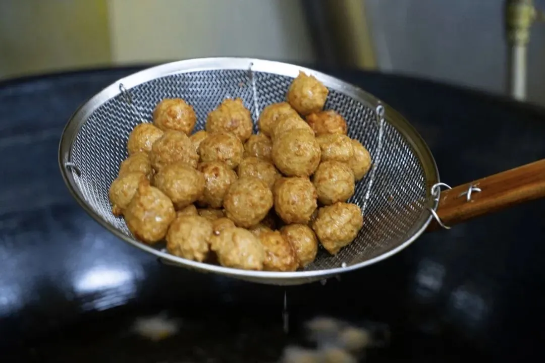 今年,该公司又创新性地推出了一款适合年轻人口味的八大件,加入了虎皮肘子、焖羊肉、鲍鱼仔红烧肉等菜品。记者在采访中了解到,云尚萱红烧丸子、扒肉条等菜品制作过程中多道工序采用手工制作,直至炸制时才实行使用“机械化”设备。该公司使用的油炸线设备可自动控制温度,使产品在制作过程中不会因为油温变化而导致食品口感下降,该设备具备自动清除炸制食物残渣功能,更好地保证了菜品的品质。来到包装车间,记者打开“云尚萱”老大同八大件礼盒,看到每一个菜品都用铝箔碗密封包装,简单大气。