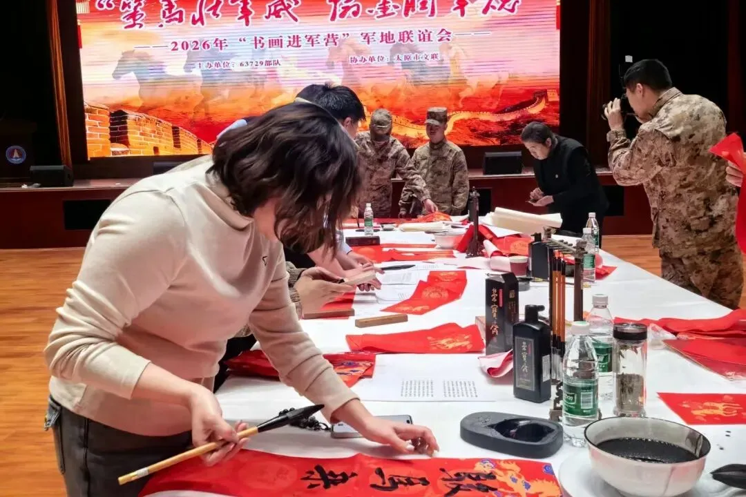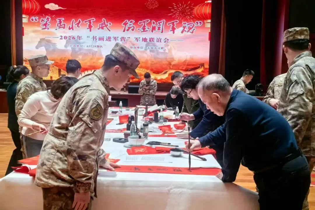 新春将至,情暖军营。2月4日,太原市文联与太原文学院组织市书协、市美协的艺术家们走进驻并某部,开展“策马壮军威 翰墨润军魂”2026年新春书画进军营活动。活动现场墨香四溢,红纸铺展,艺术家们以笔墨丹青传递祝福,以书香雅韵温暖兵心,为军营增添了浓厚的节日氛围和文化气息。