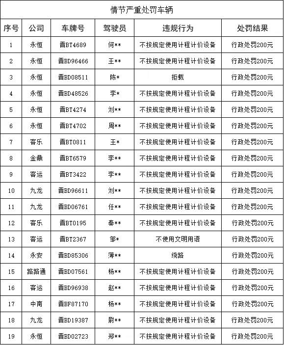 >大同市市区出租汽车行业2026年1月 “红黑榜”