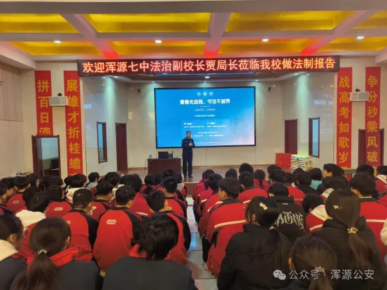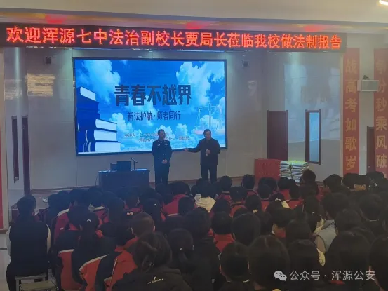 为筑牢校园安全防线,切实增强青少年法治观念和自我保护意识,2月2日,浑源县公安局走进浑源七中,开展新修订《中华人民共和国治安管理处罚法》专题普法宣传活动。法治副校长、县公安局副局长贾军担任主讲,蔡村派出所民辅警全程协同,为全校师生带来了一堂精准、实用的法治教育课。