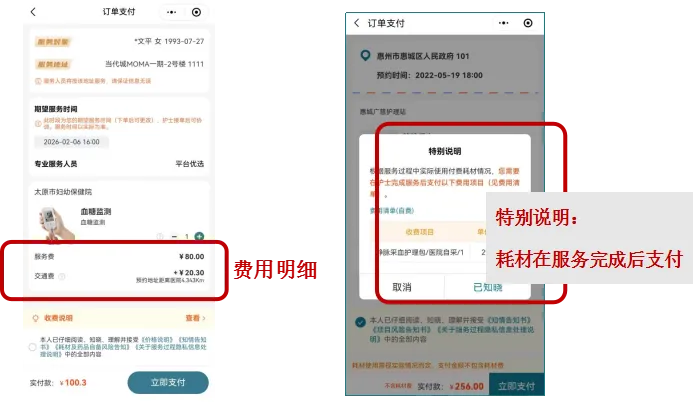 5、下单成功:支付完成后即下单成功,等待护士按预约时间上门服务。