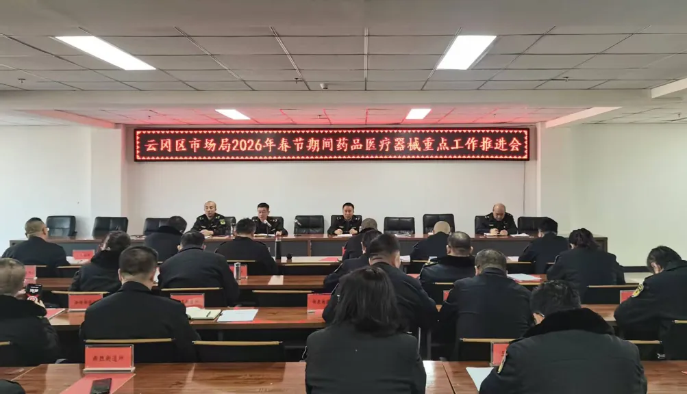 春节将至,药品、医疗器械需求进入高峰期。为保障药械质量安全,近日,大同市云冈区市场监管局召开2026年春节期间药品医疗器械重点工作推进会,同步启动专项检查行动,以“早谋划、严监管、实举措”为抓手,全面压实监管责任,全力护航节日期间群众用药用械安全。
