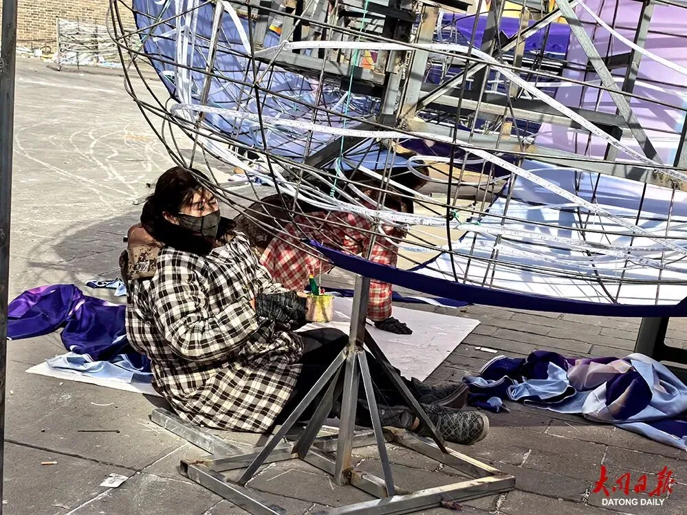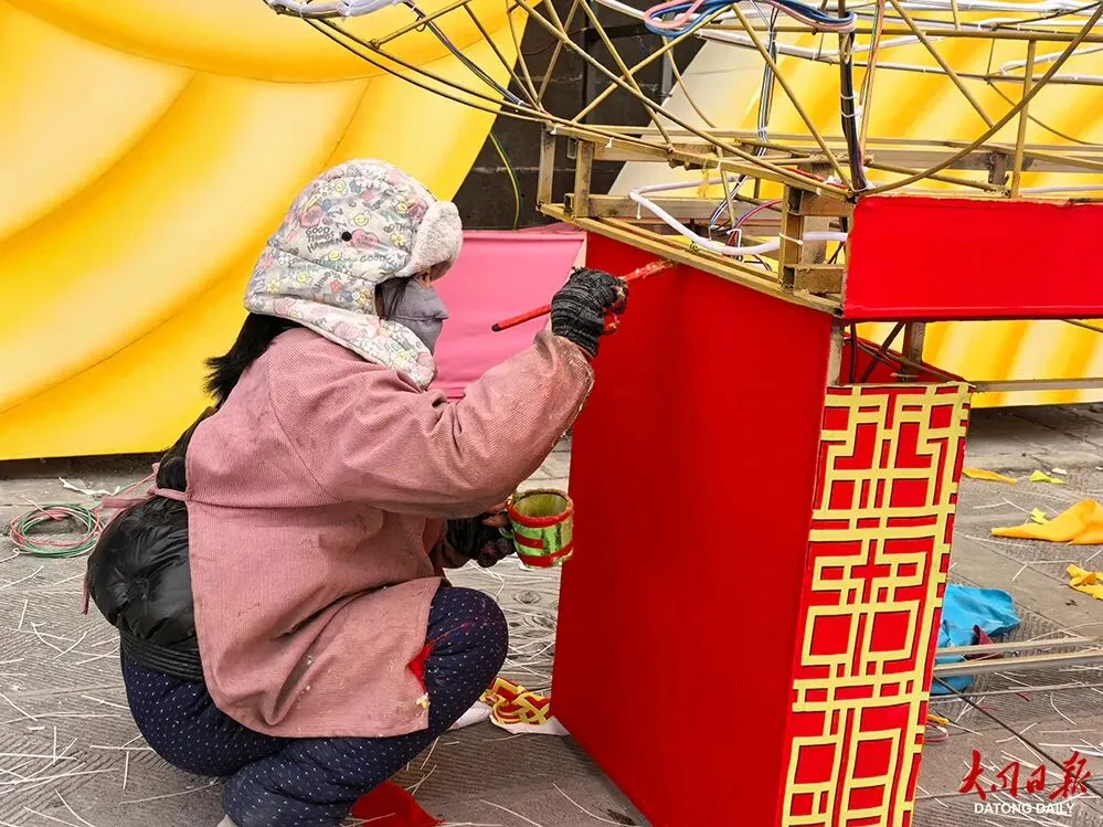 现场,工作人员正忙着安装、调试——超大型灯组的钢架尽显磅礴气势,长卷式灯组的绢布被细细绷展,各类彩灯构件也在逐步成型。