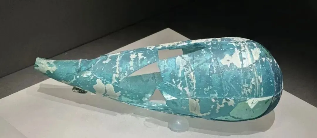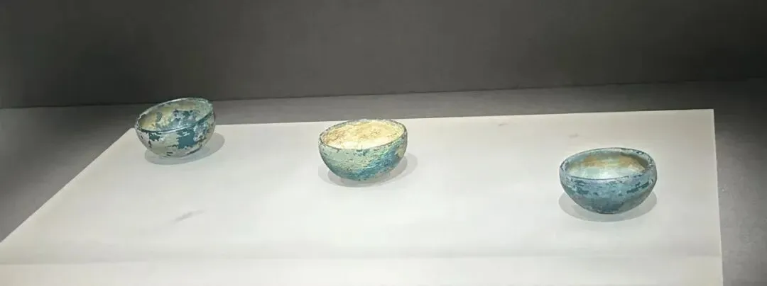 沿展线前行,最夺人眼球的是一排玻璃器,蓝色的!