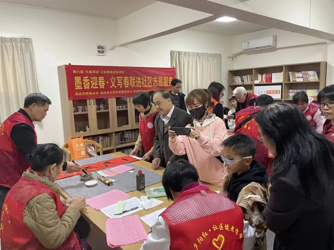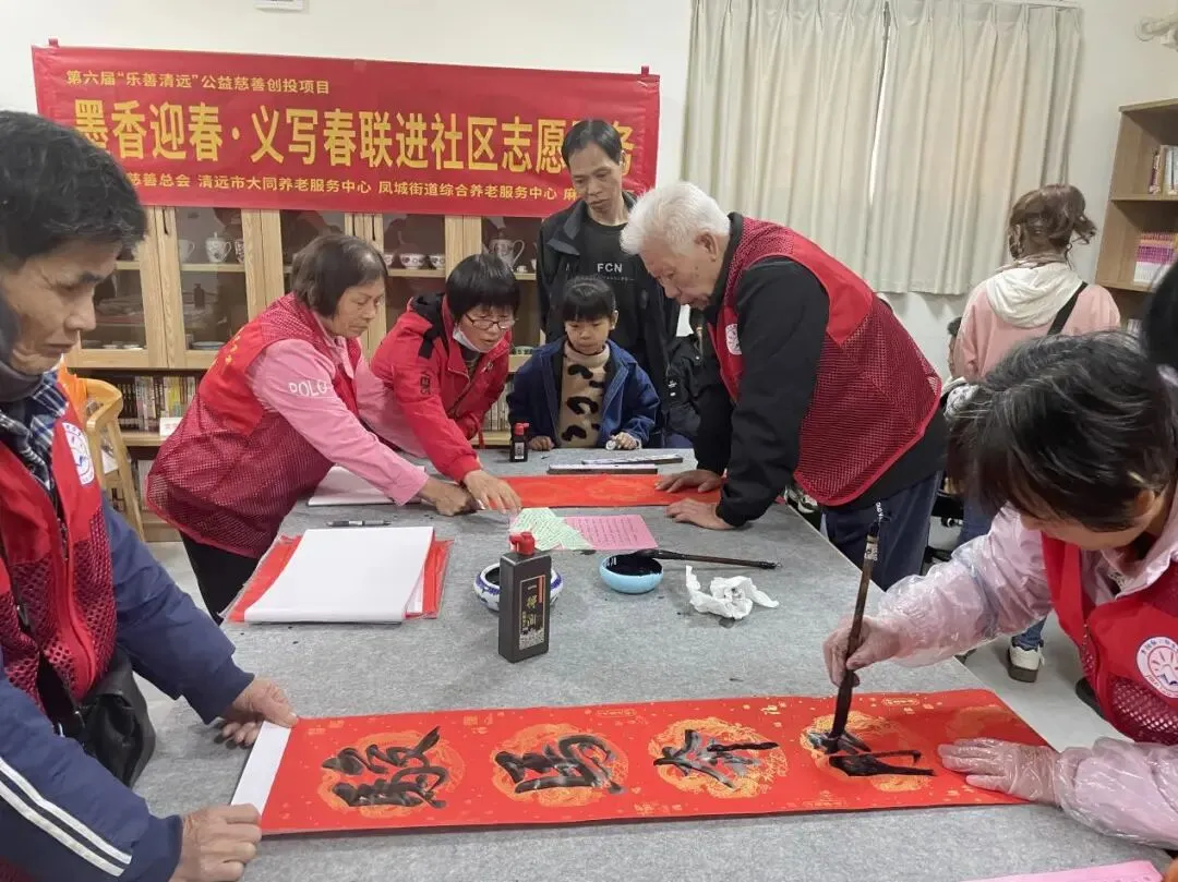 立春时节,万象更新。为弘扬中华民族传统文化,营造喜庆祥和的节日氛围,2月4日上午,清远市大同养老服务中心、凤城街道综合养老服务中心联合夕阳红•社区健老学堂志愿服务队共同举办的"墨香迎春·义写春联"志愿服务活动,在麻寺田社区居委会一楼阅览室顺利开展。活动以笔墨传递温情,为社区居民送上诚挚的新春祝福,有49名居民领取了手写春联,现场墨香四溢,年味浓浓。