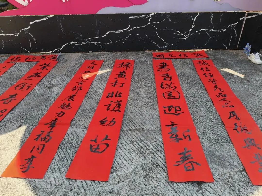 活动现场墨香四溢,书法家们不仅为群众书写了一幅幅饱含新春祝福的传统春联,还别出心裁地创作了融入文明诚信经营理念和“扫黄打非”主题的特色宣传对联。这种将文化传承与政策宣传有机结合的创新形式,吸引了众多群众驻足欣赏。