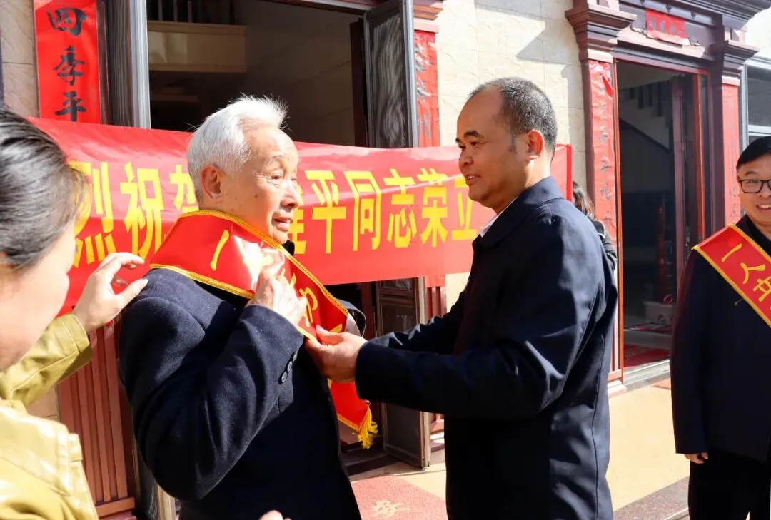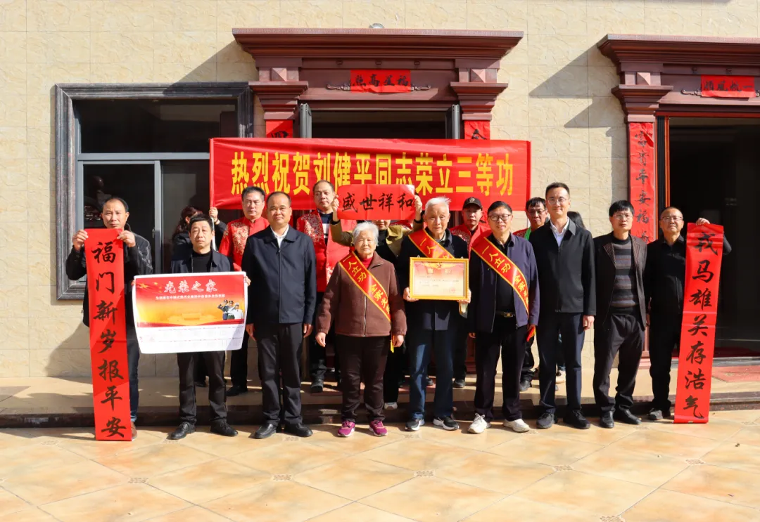 在新春佳节来临之际,为弘扬拥军优属光荣传统,营造尊崇军人的浓厚氛围,2月5日上午,长汀县大同镇党委书记黄鲁卡、县退役军人事务局局长蔡坤高等领导带队,前往荣立三等功的现役军人刘健平家送上立功喜报和节日祝福。