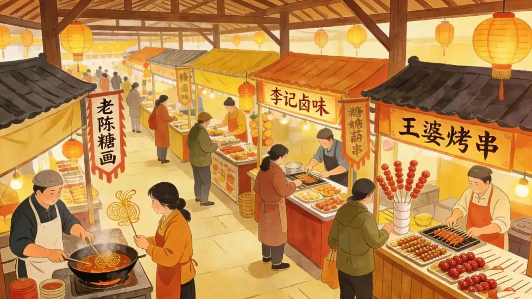 60个摊位全开放年集商户入驻(免摊位费),划分 3 大区域