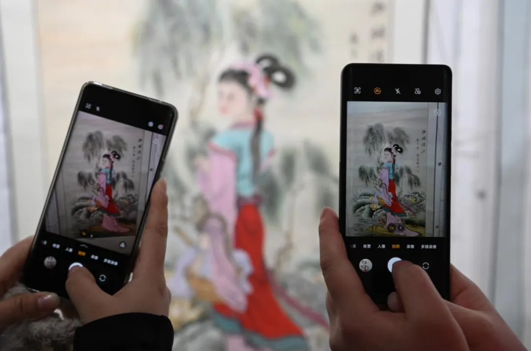 观展者用手机记录中国画作品(霍飞飞 摄)