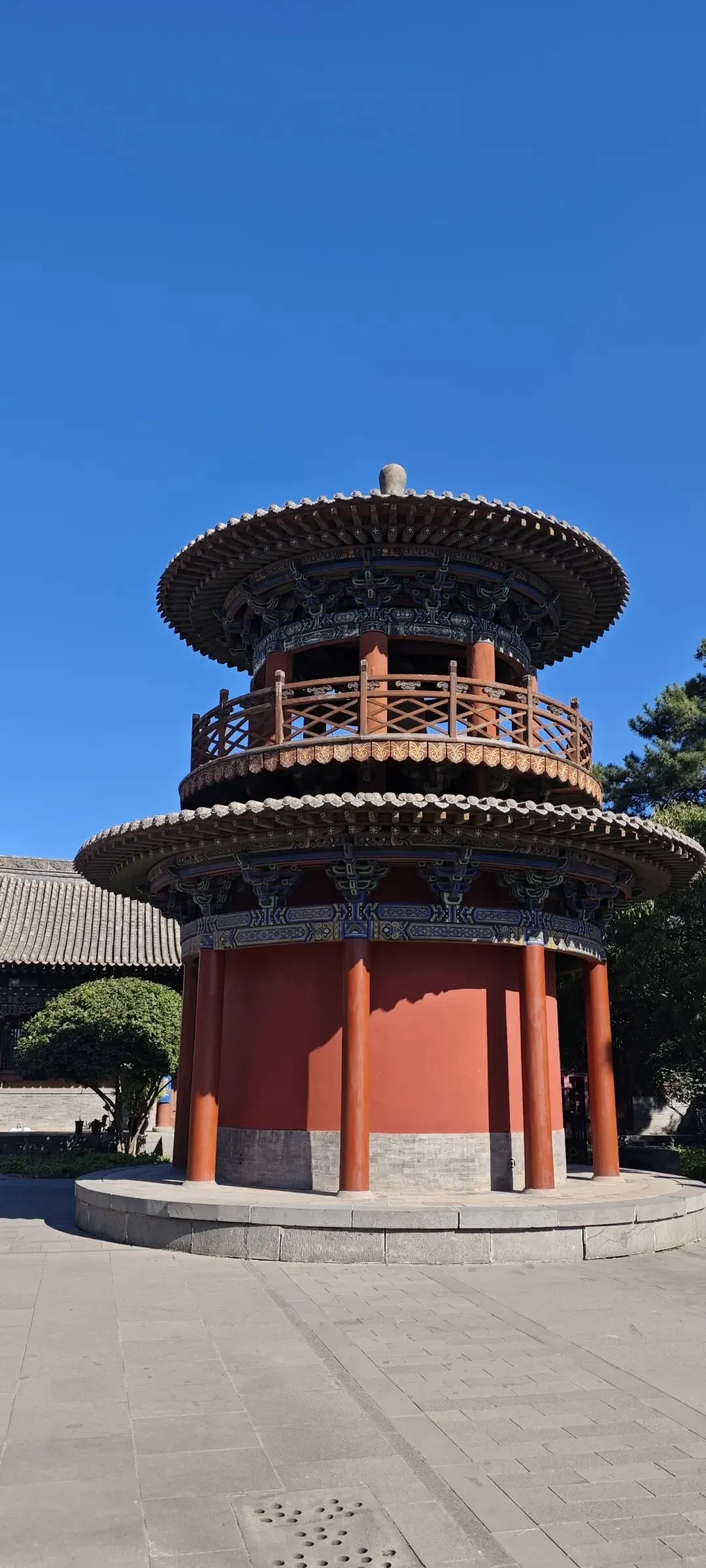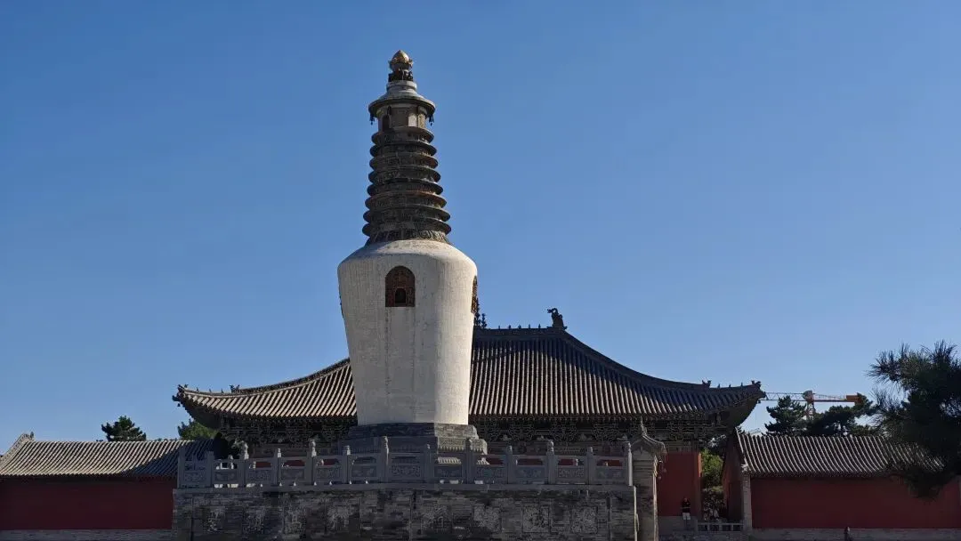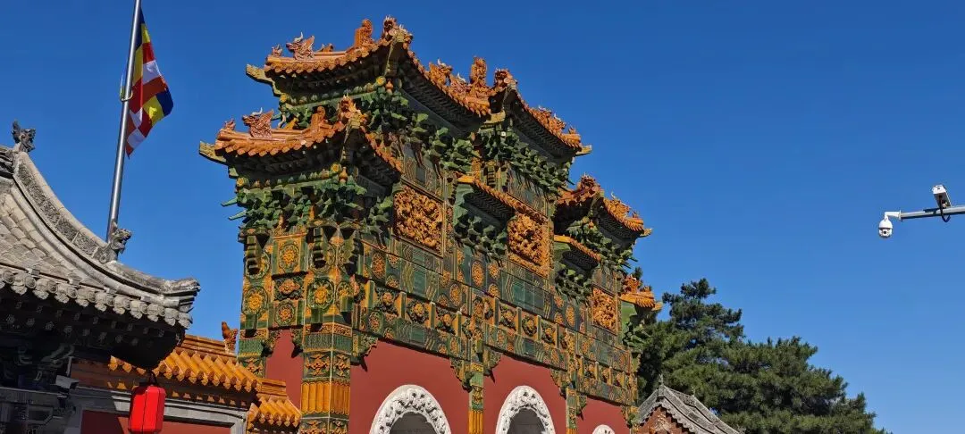 法华寺塔无疑是整座寺院的灵魂。2米高的方形台基上,两层束腰承托着洁白宝瓶塔身,塔顶八层黄、绿、紫三色琉璃收檐,在阳光下折射出渐变光晕,与藏传佛教"解脱八道"的象征不谋而合。