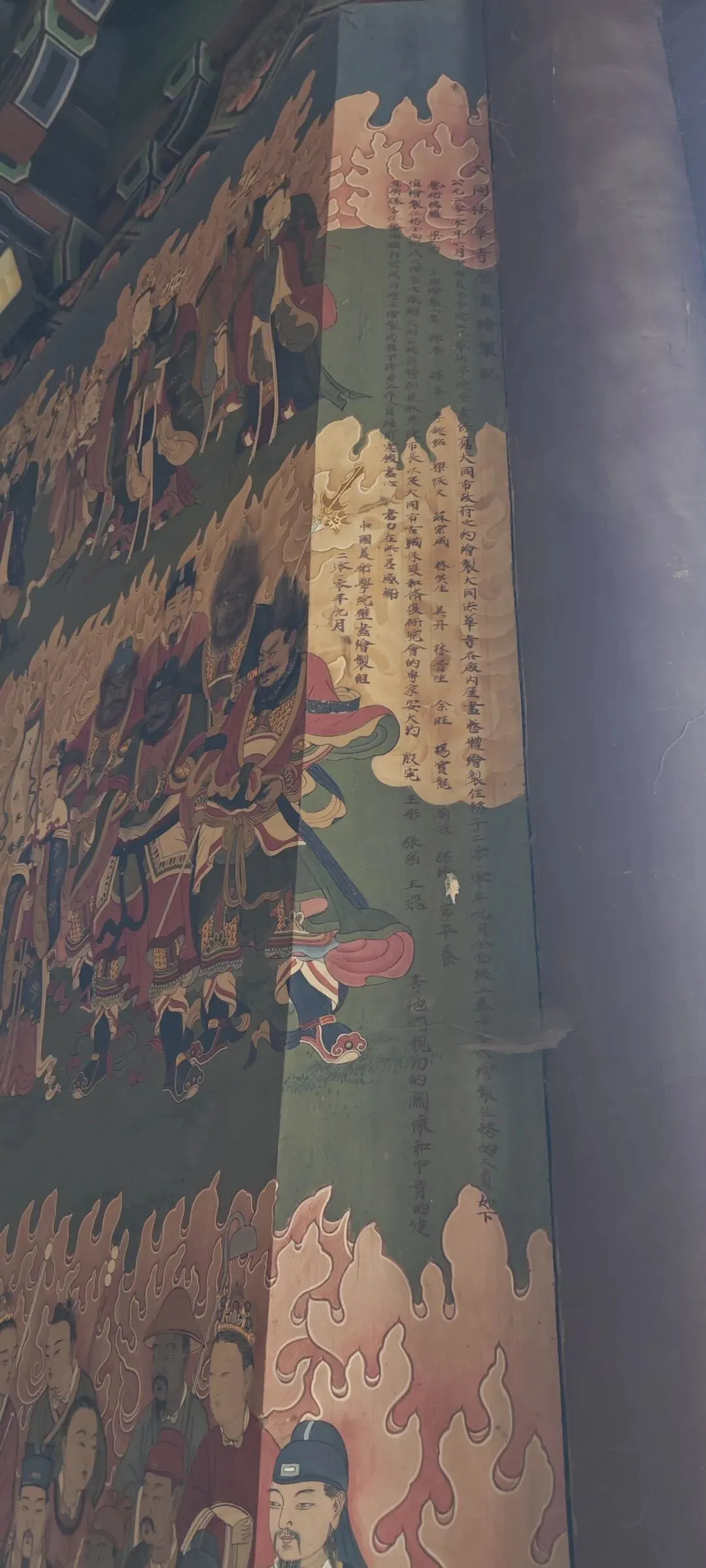 大雄宝殿山墙的水陆壁画,又称"人神行进图",儒释道三教人物共赴法会,这种打破宗教壁垒的创作,恰是边镇大同在历史上作为多民族交汇地的生动写照。