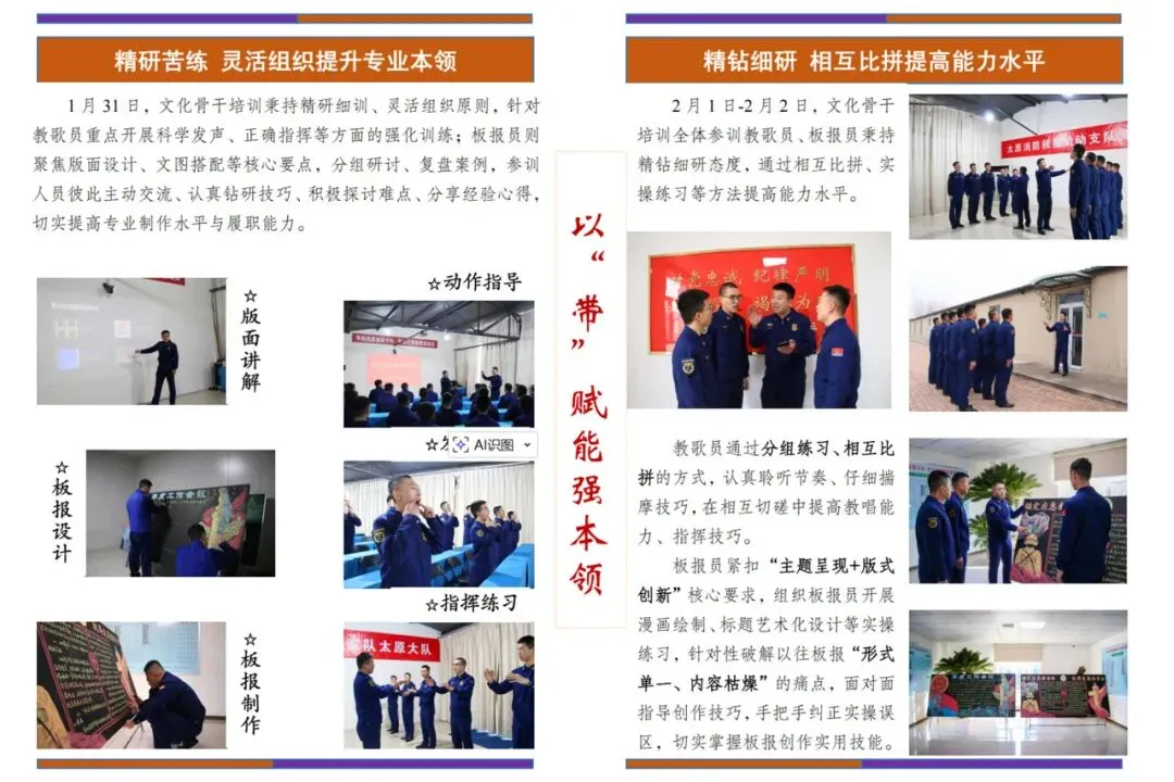 为进一步推进队伍文化建设,提升文化骨干综合素养,打造一支“能教唱、会指挥、会设计、能创作”的文化骨干队伍,近日,太原消防救援机动支队文化骨干培训圆满收官。来自基层一线的参训人员齐聚一堂,以学促能、淬炼本领,在为期7天的集中培训中凝聚共识、提升技能,为支队文化建设高质量发展注入新活力。