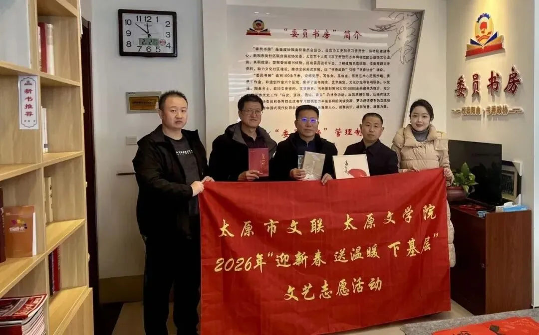 正值太原市文联开展2026年“迎新春 送温暖 下基层”文艺志愿活动之际,2月3日,市文联副主席杨旭东同志带队深入阳曲县文联,代表太原市文联、市文学院为县文联机关干部职工送来关怀与慰问。