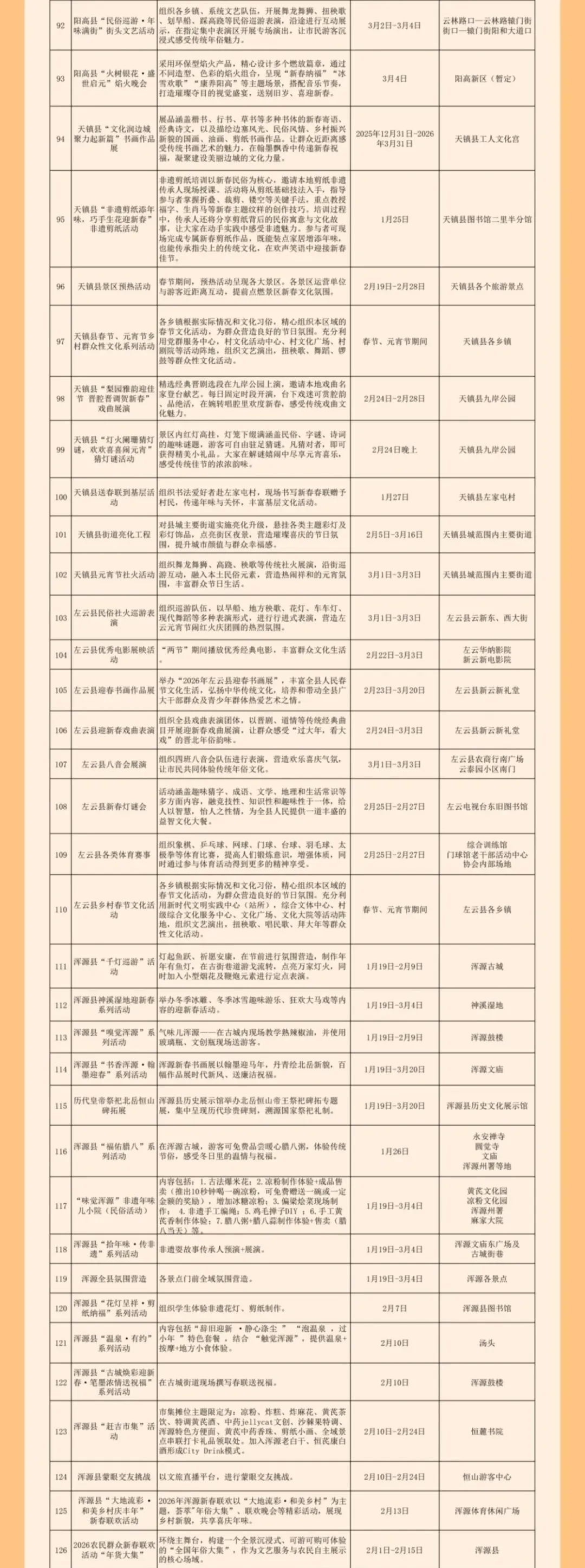 自农历正月初二起,主题花车夜游、跨区域民俗社火展演及大型元宵巡游将陆续登场,传统锣鼓、舞龙舞狮、非遗秧歌将遍布古城街巷。同期,多个重点文旅区域将推出街头沉浸式演艺,融入魔术、戏曲等互动元素。文化惠民演出、地方戏曲展演、小剧场曲艺专场将在各剧院持续开展,丰富市民游客的文化选择。