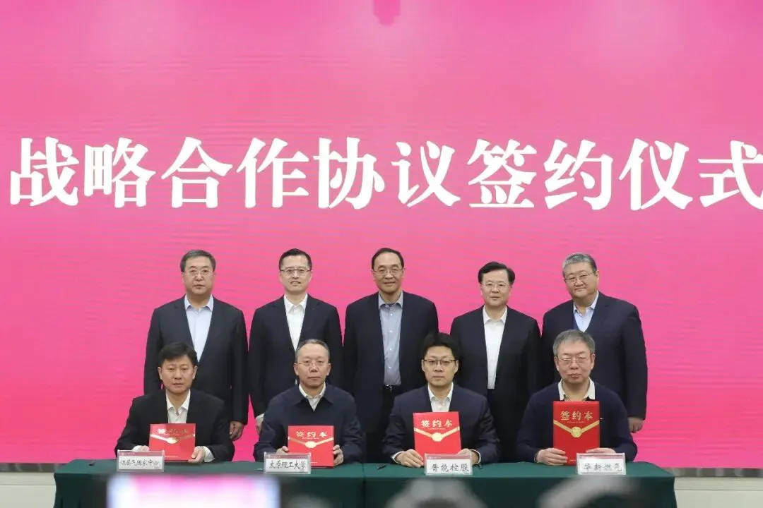 在各方领导见证下,公司总经理、党委副书记刘洪涛,太原理工大学党委常委、副校长任喜莹,晋能控股集团有限公司总工程师、煤与煤层气共采全国重点实验室主任边强,华新燃气集团有限公司党委委员、董事、副总经理张文元代表各方签约。