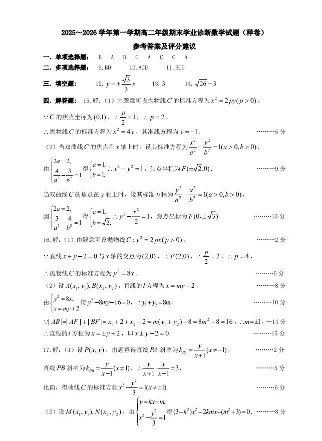 太原市2025-2026学年第一学期高二年级期末学业诊断
