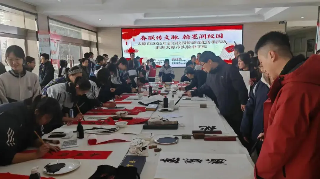 2月5日上午,山西省青年书法家协会组织青年书家走进太原实验中学,开展“迎新春 送祝福”公益慰问活动,以笔墨为媒传递温情,为全校师生送上新春问候与文化滋养。