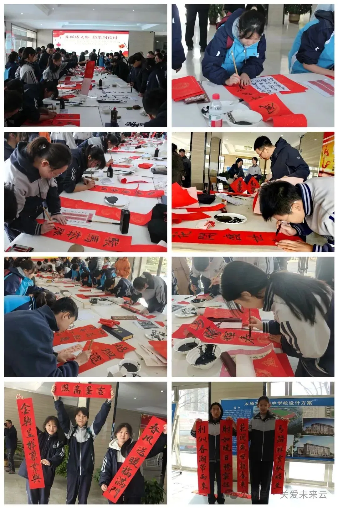 太原实验中学深耕教育一线,坚守育人初心,为青少年成长保驾护航。省青书协送福进校园,既是对教育工作者辛勤耕耘的致敬,也是文艺工作者践行社会责任的具体体现,更是以中华优秀传统文化赋能校园教育的生动实践,让师生在新春氛围中感受传统文化魅力,厚植文化自信,凝聚奋进力量。