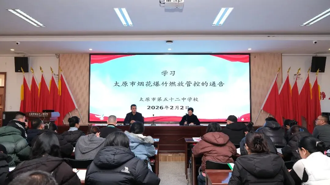 2026年2月2日下午4:30,太原市第五十二中学校全体教职工齐聚教学楼六层会议室,召开2025-2026秋季学期末全校教职工会议暨测评会。本次大会以落实期末及寒假相关工作部署、开展2025年度各项测评工作为核心,回望一季耕耘的坚实足迹,明确后续工作的具体方向,凝聚起新学年继续前行的磅礴力量,为这一学期的教育征程,画上圆满而温暖的句点。