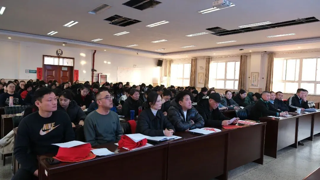 合唱环节结束后,孙志清副校长登台讲话,她首先围绕本学期教学工作复盘、期末收尾、寒假业务学习及下学期教学规划作出具体部署,梳理工作成效、分析存在不足,引导全体教职工凝心聚力、深耕教坛,筑牢教学质量根基;随后,结合市教育局相关工作要求,对假期工作作出明确安排,强调要筑牢学生各类安全防线、深化家校协同育人、规范假期作业管理,重点关注特殊学生群体,同时要求全体教职工恪守教师职业道德规范、严格落实太原市烟花爆竹禁燃规定、合理规划假期生活,明确假期值班干部需切实履行值守职责,确保学校各项工作有序衔接。