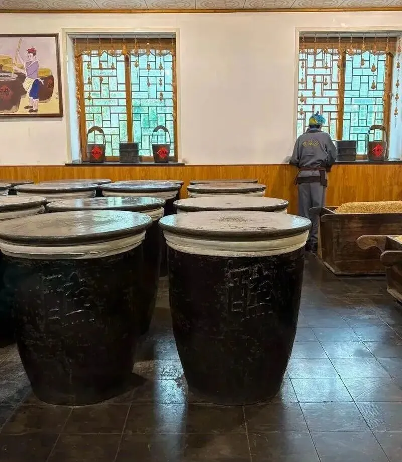 这里是“中国醋都”,但不是那种为了游客特意搭建的影棚。走在街上,你闻到的酸味是真实的,路边晒着的醋缸也是真实的。宝源老醋坊里,几千个醋缸整整齐齐地晒太阳,那场面,不是壮观,而是踏实。黑得发亮的醋醅,在阳光下微微冒着热气,工人们拿着耙子翻动,不是在表演,是在干活。