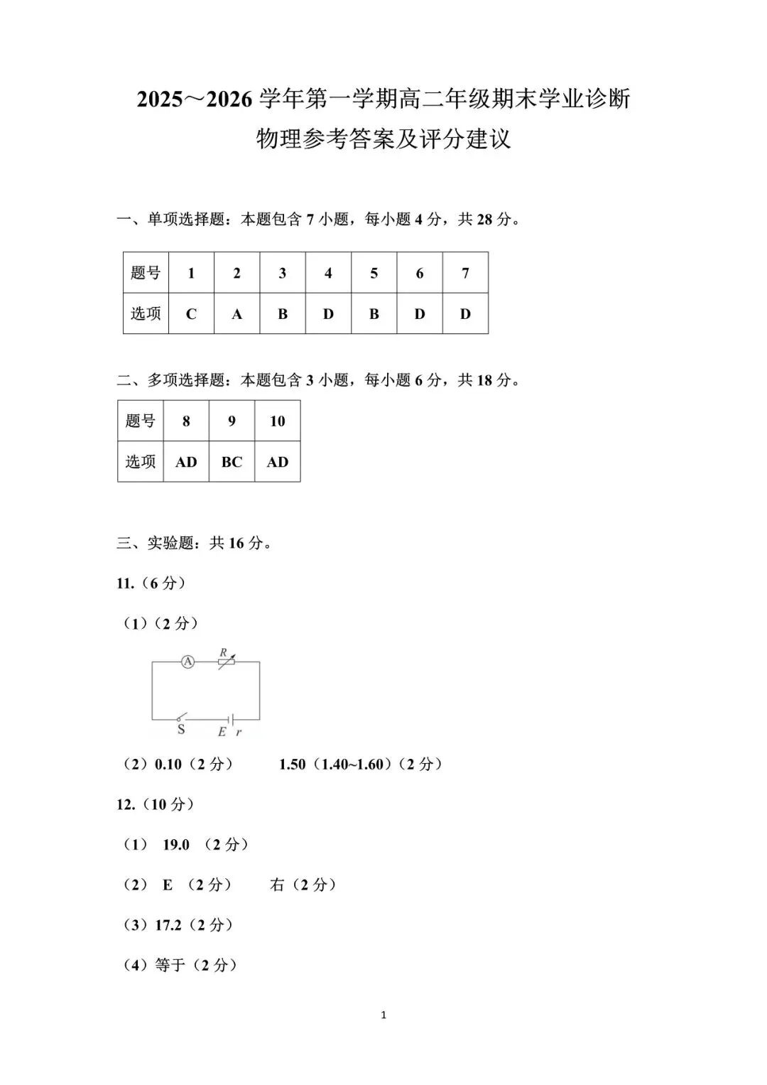 试卷· 答案
