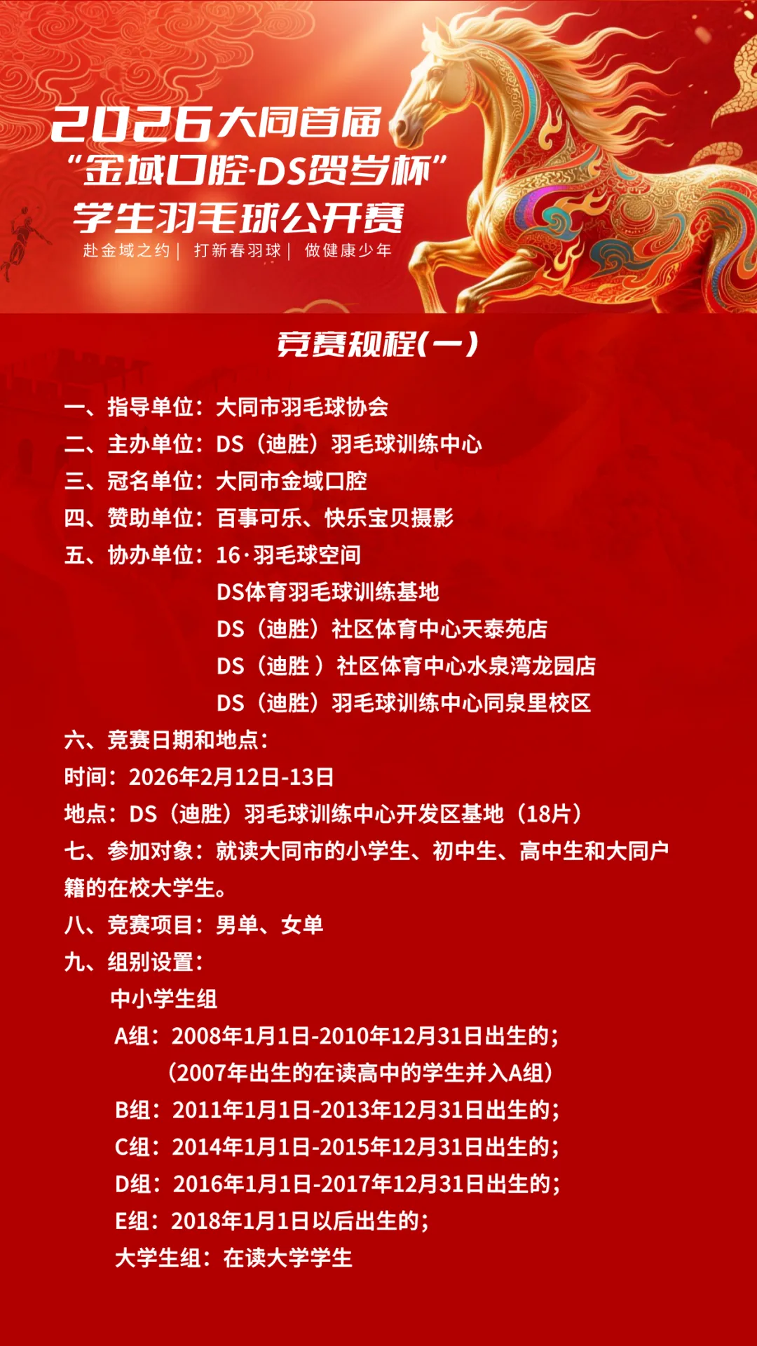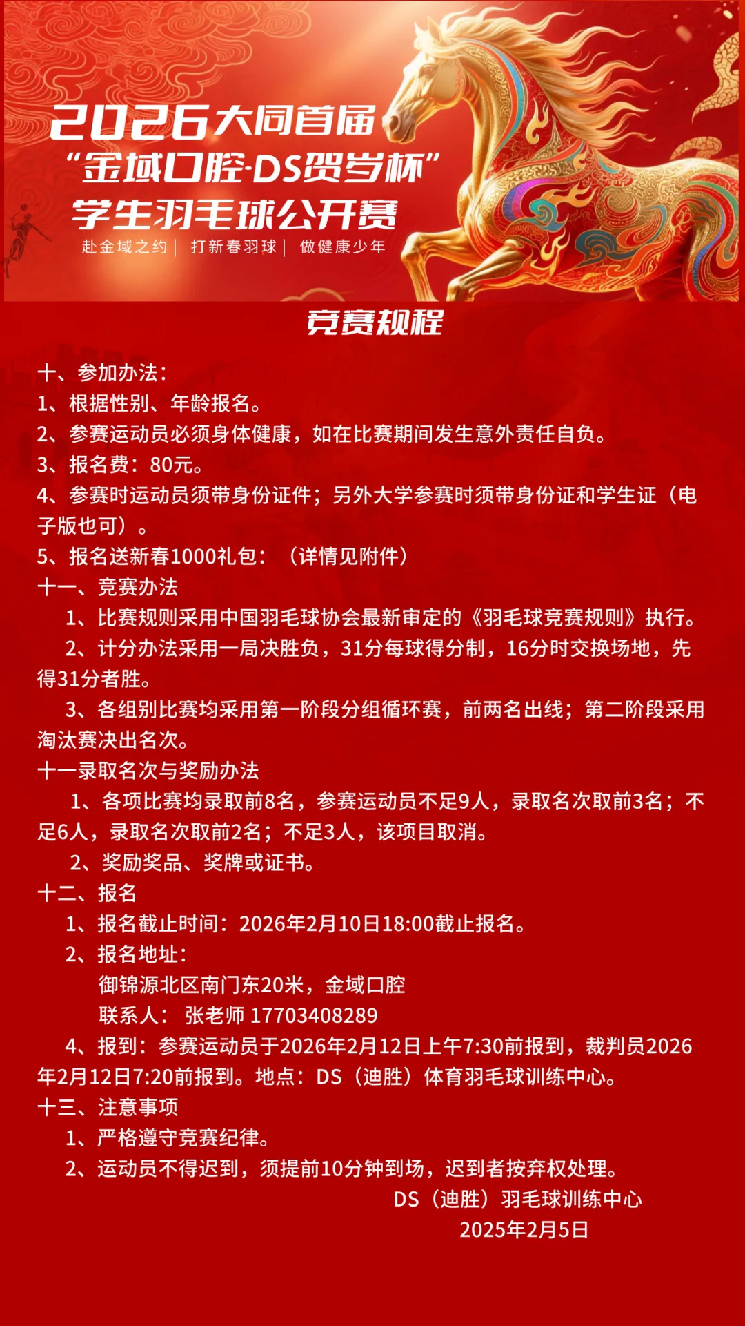 2026大同首届“金域口腔·DS贺岁杯”学生羽毛球公开赛