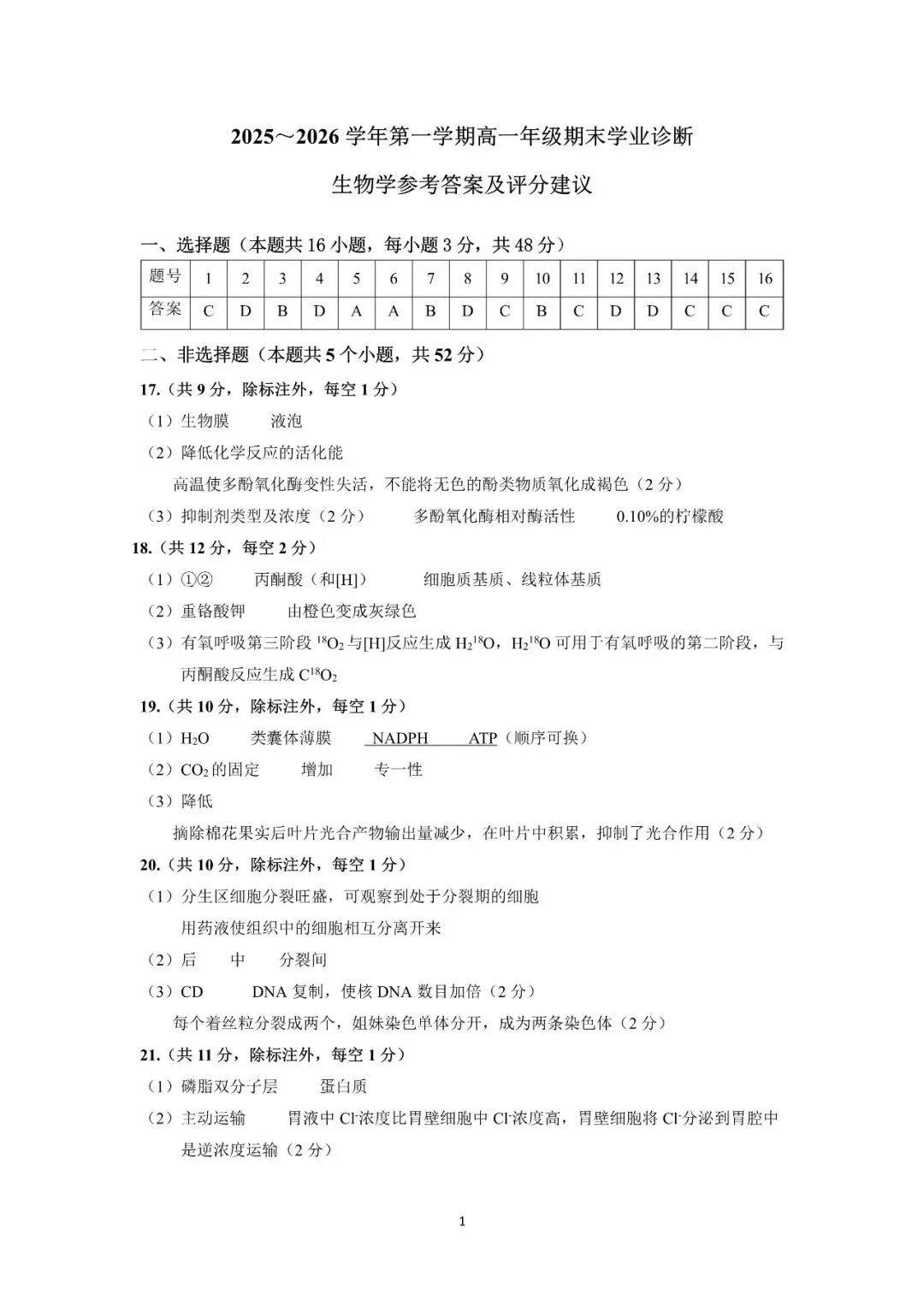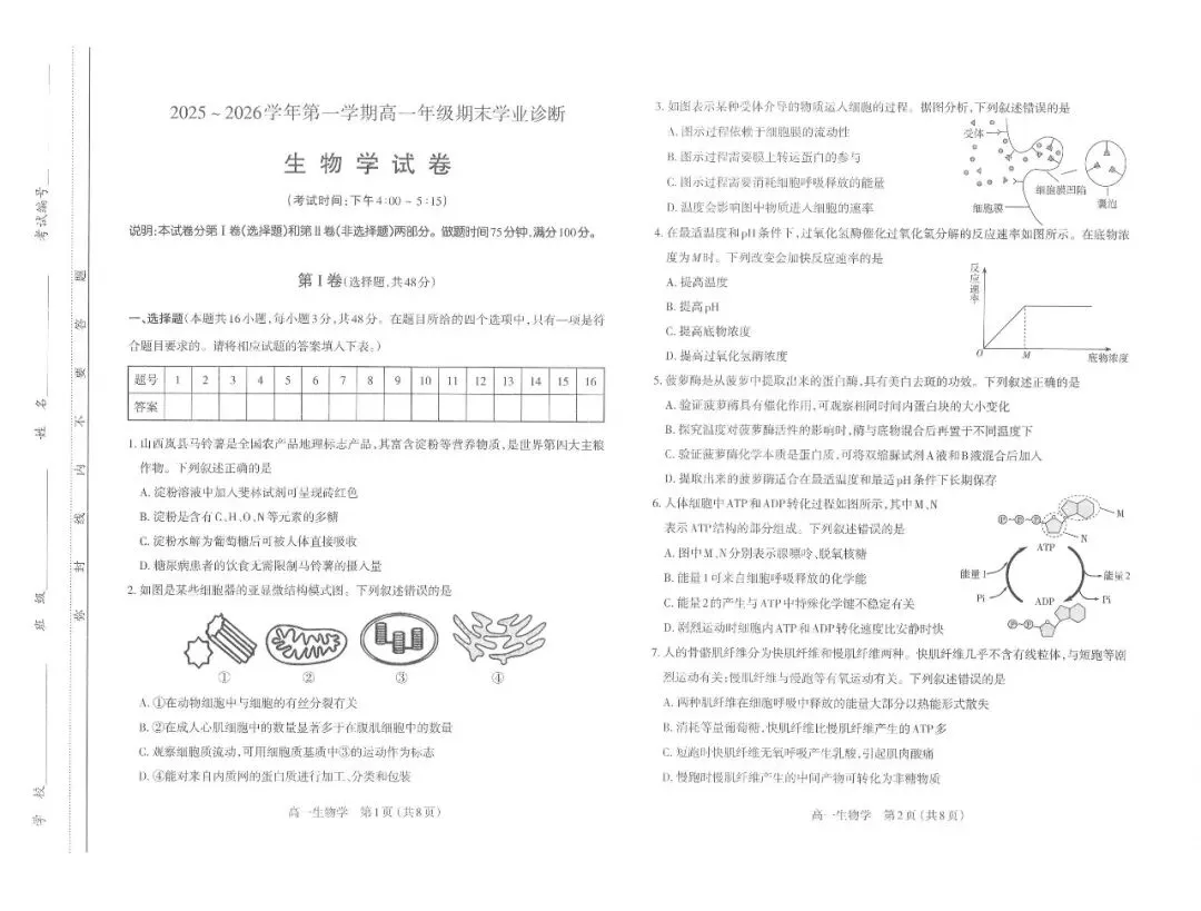 山西省太原市2025-2026学年高一上学期期末学业诊断(全)