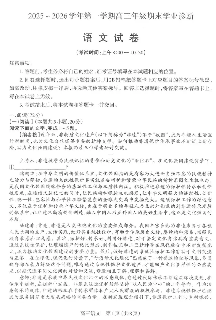 山西省太原市2025-2026学年高二上学期期末学业诊断(全)