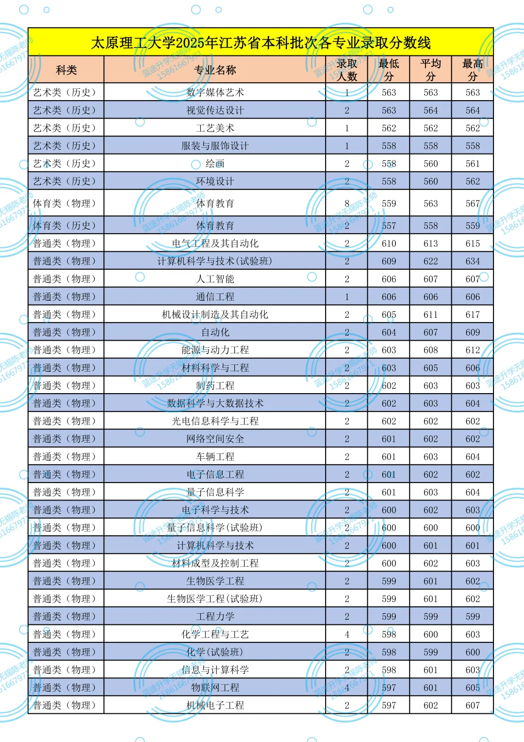 >太原理工大学2025年江苏省本科批次各专业录取分数线