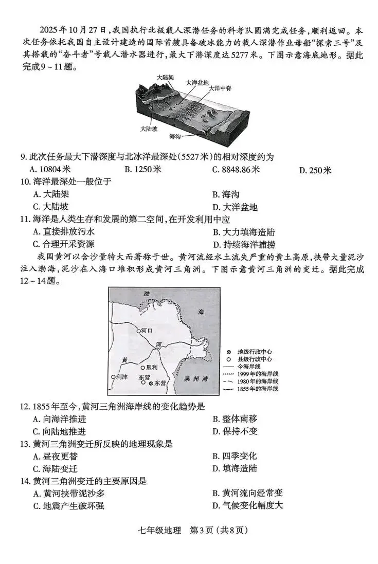 2025~2026学年第一学期七年级期末学业诊断地理试题参考答案