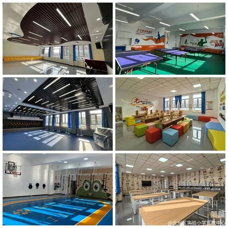 学校布局合理、景致优美,为学子打造宜学宜居的成长空间:现代化教室配备多媒体教学设备,明亮宽敞且充满人文气息;标准化操场、足球场地和篮球场满足孩子日常体育锻炼与赛事需求;让校园的每一处都浸润着育人温度。