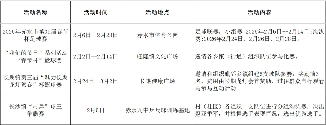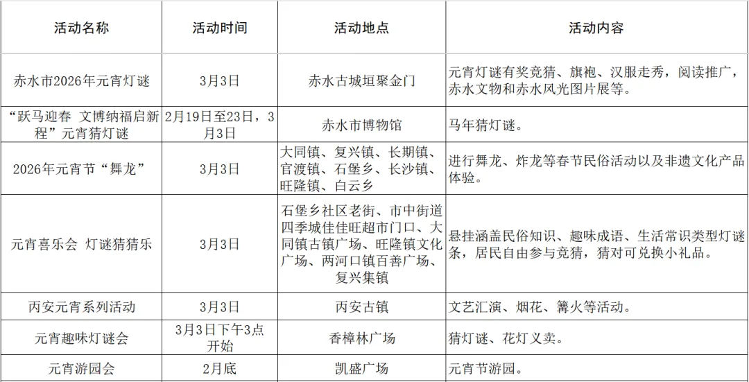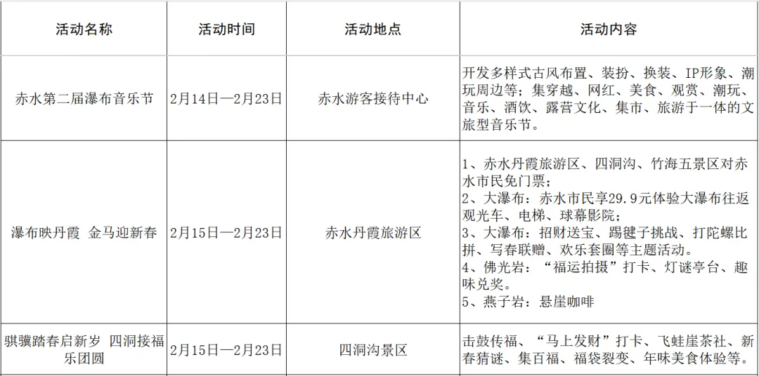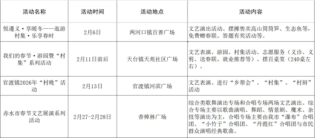 赤水市2026春节、元宵期间文体旅活动