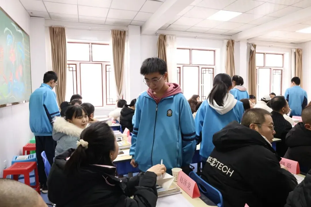 各班班主任早已备妥详实方案,从班级学风建设、半学期整体发展,到每位学生的成长轨迹,逐一细致汇报,尽显用心。随后,语文、数学、英语、物理、道法,历史等主科教师相继进班,结合学科特性剖析学生学习状态,递上兼具专业性与实操性的指导建议。