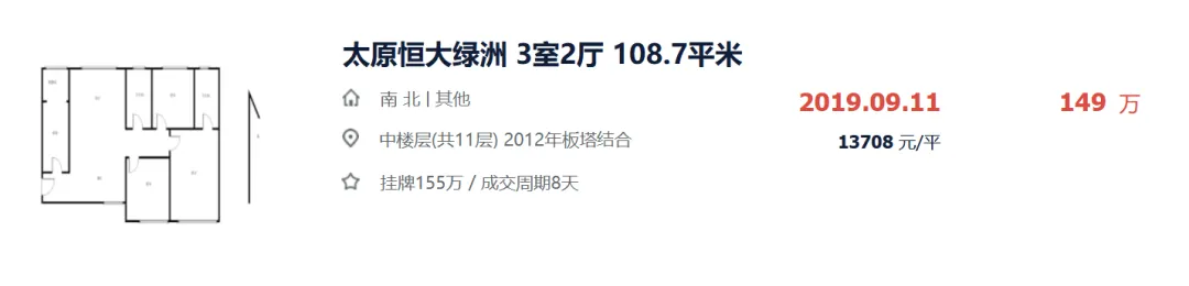 要知道,在2019年9月,同户型的房源,成交单价高达13708元/㎡,总价149万。