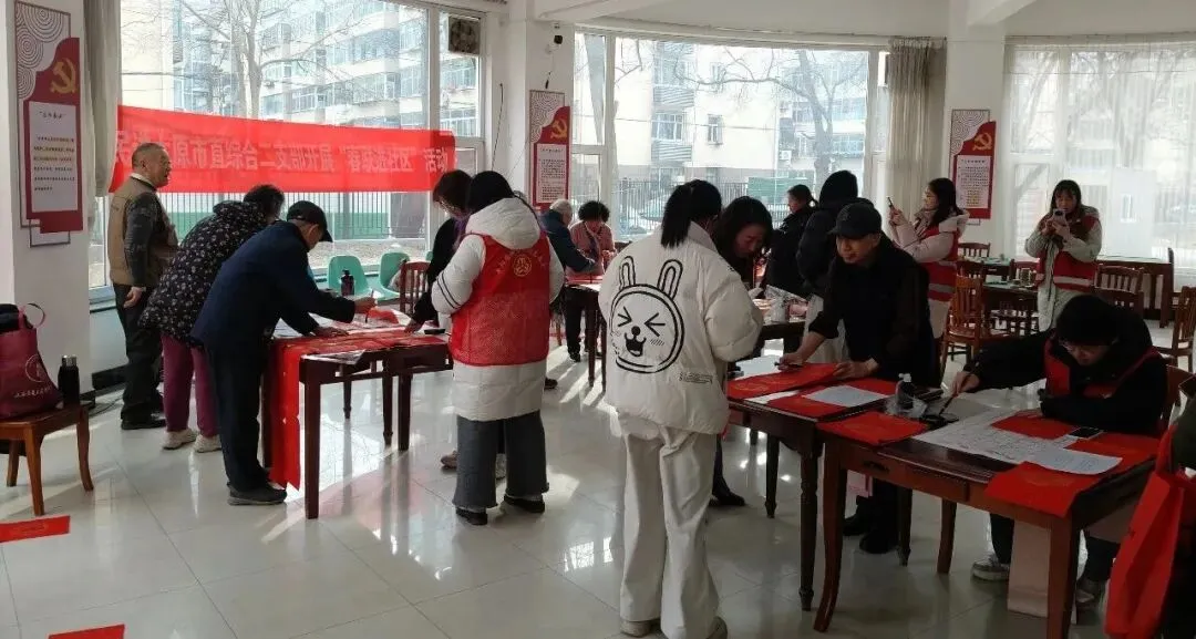 为传承中华优秀传统文化,营造喜庆祥和的春节氛围,2月4日,民进太原市直综合二支部赴小店区中辐院社区,举办“春联暖社区”活动,邀请数位民进会员中的书法爱好者,走进社区活动中心,用笔墨为居民送上最真挚的新年问候。