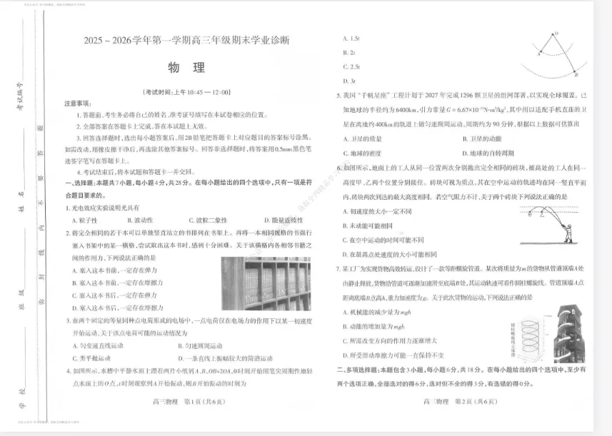 【山西卷】【太原市教体局】【期末学业诊断】山西省太原市2025~2026学年第一学期高三年级期末学业诊断(02.05 开考
