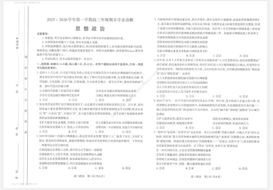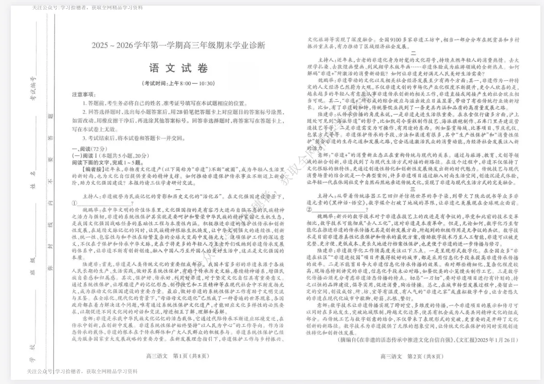 >【山西卷】【太原市教体局】【期末学业诊断】山西省太原市2025~2026学年第一学期高三年级期末学业诊断(02.05 开考