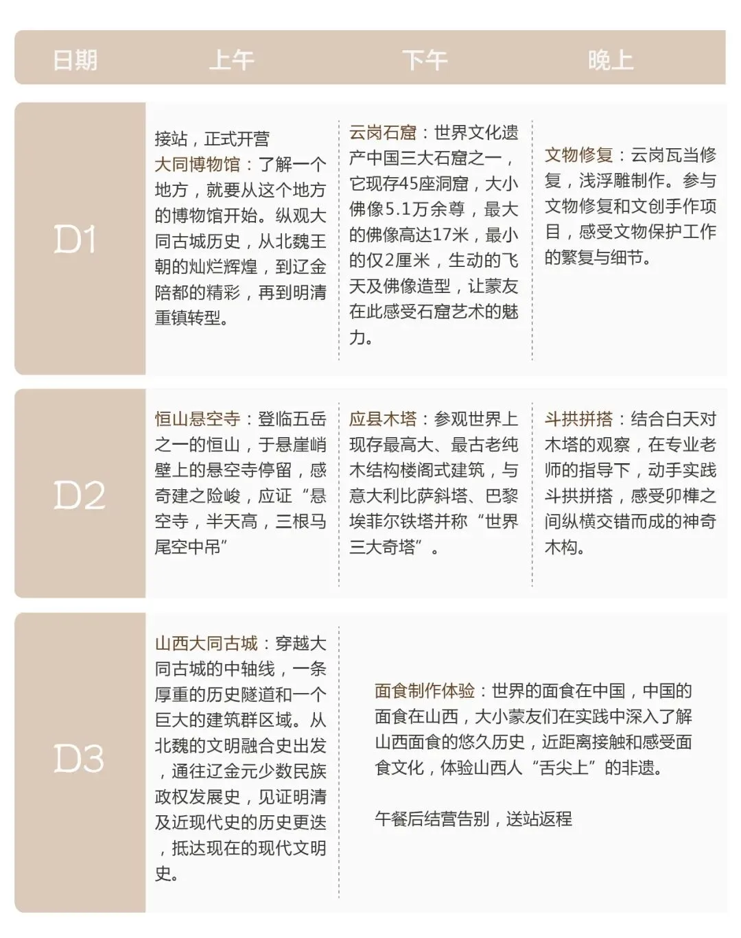 这趟,穿越千年的尘埃,踏上一段追溯历史印记的旅程。在这趟游学之旅中,小蒙们将与我们一同走进享有“中国古代文化博物馆”美誉的山西大同,亲身感受北魏时期浓厚的历史文化。