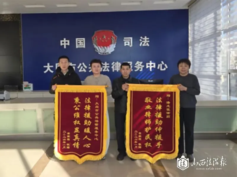 2月2日,法律援助受援人黄先生将一面印有“法律援助暖人心 秉公维权显真情”的锦旗,和一面印有“法律援助伸援手 敬业律师护民权”的锦旗,分别赠与大同市公共法律服务中心和承办案件的法援律师潘龙霞,以此表达他内心深处对法援工作的衷心感谢。锦旗虽轻,但背后是一段长达数年、充满法治温度的法援故事。