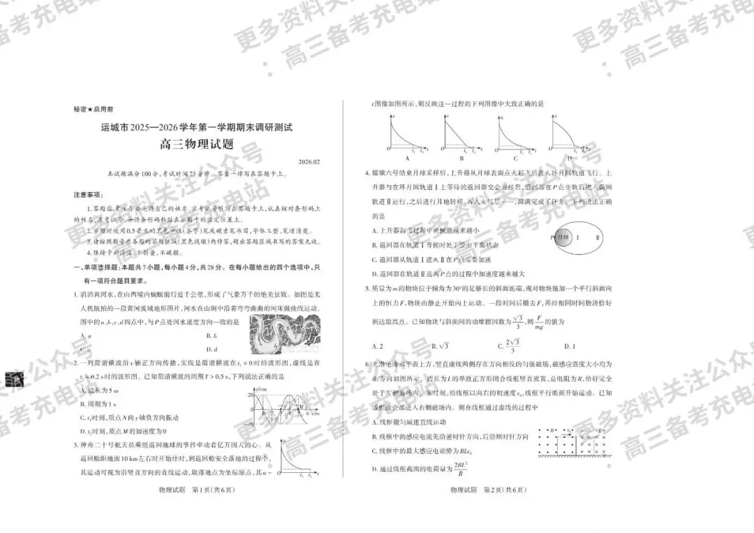 山西思而行·运城、大同、阳泉2025-2026学年高三第一学期期末调研测试全科试卷 (含答案)