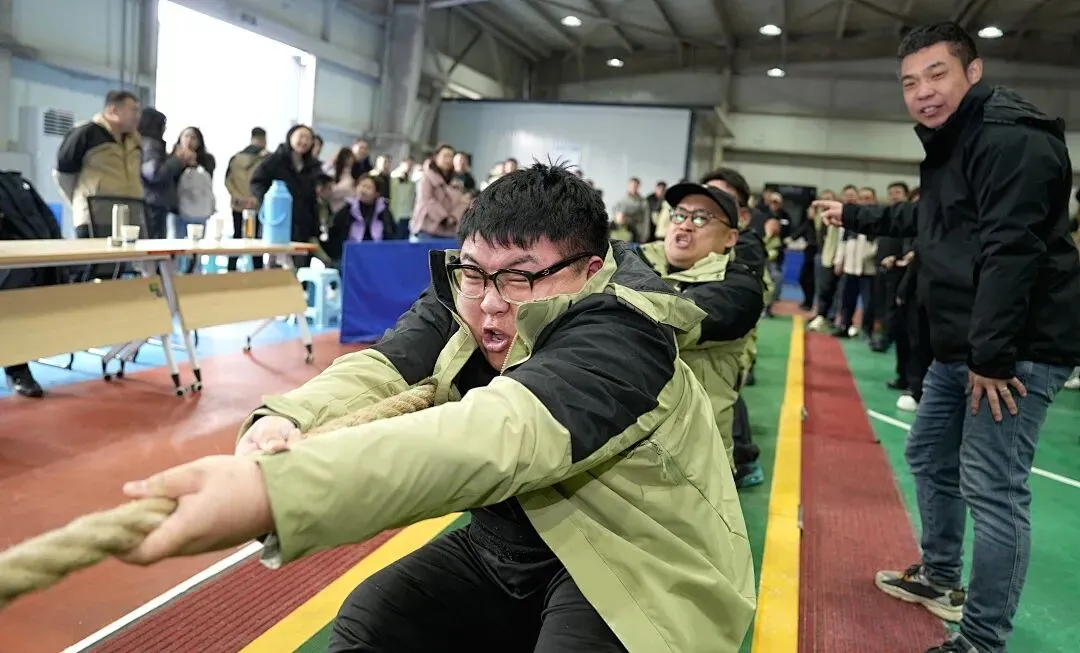“一二!一二!” 铿锵有力的号子声响彻全场。现场的职工按捺不住激动的心情主动化身拉拉队员。胜利的欢笑声、呐喊声、助威声、鼓掌声此起彼伏,如潮水般在全场荡漾。