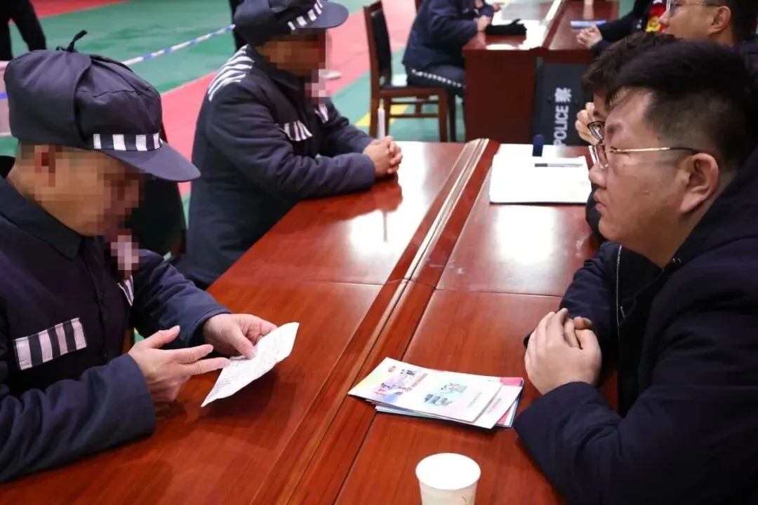 在调解现场,监区管教民警、司法局工作人员、专职律师、调解员与监狱筛查狱内外矛盾纠纷未完全化解的罪犯面对面谈心交流,共同推动罪犯狱内外矛盾纠纷化解,现场还为罪犯发放了普法教育读本。